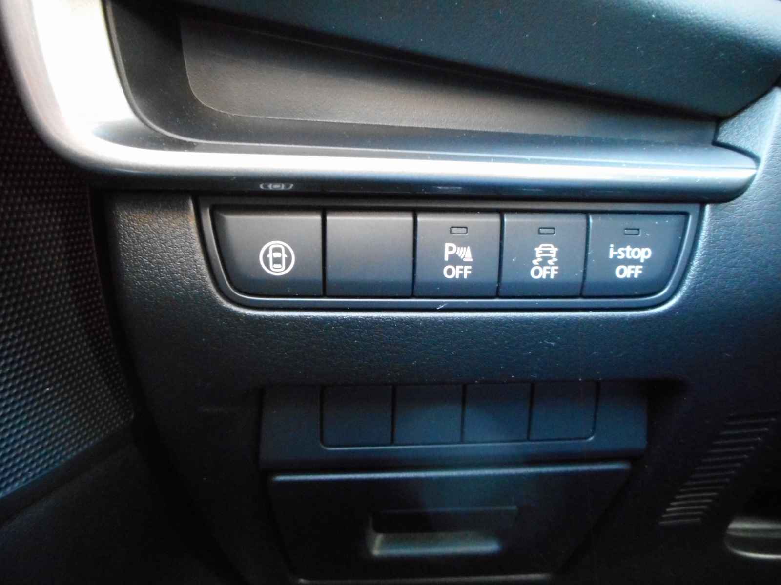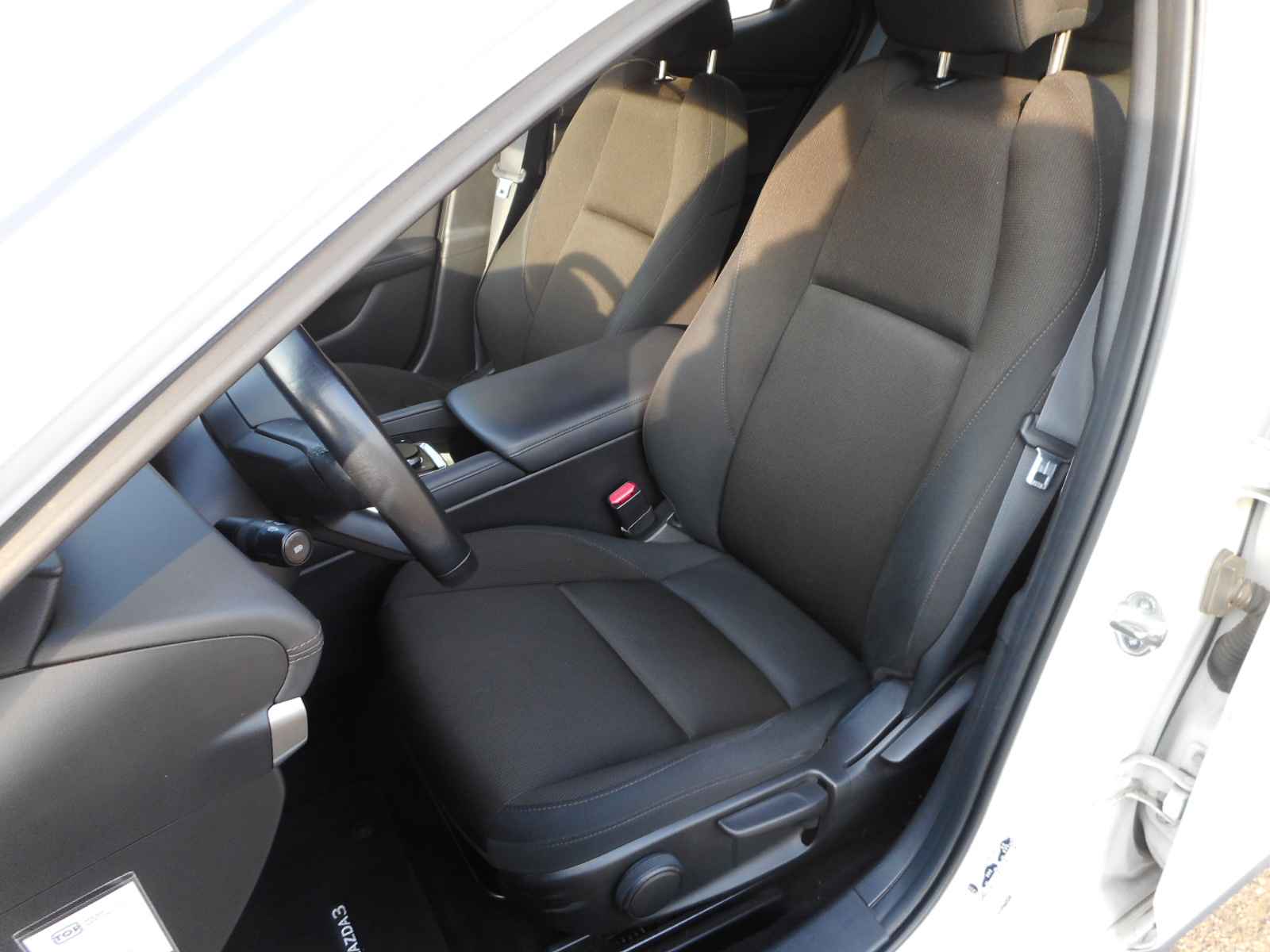 Zoals u mag verwachten van deze Mazda 3 is hij uitgerust met een reeks aan actieve veiligheidssystemen. Onderweg zorgt verkeersborddetectie ervoor dat u geen waarschuwingsbord mist. Keep your lane? Het Lane-keeping systeem zorgt er automatisch voor. Het forward collision warning-systeem berekent via een sensor de afstand tot het verkeer vóór u en komt in actie als er gevaar bestaat van een botsing. Ook helpen het head-up display, dodehoekdetectie, hill hold functie, brake assist, vermoeidheidsherkenning en bandenspanningcontrolesysteem, uw rit tot een veilige rit te maken.