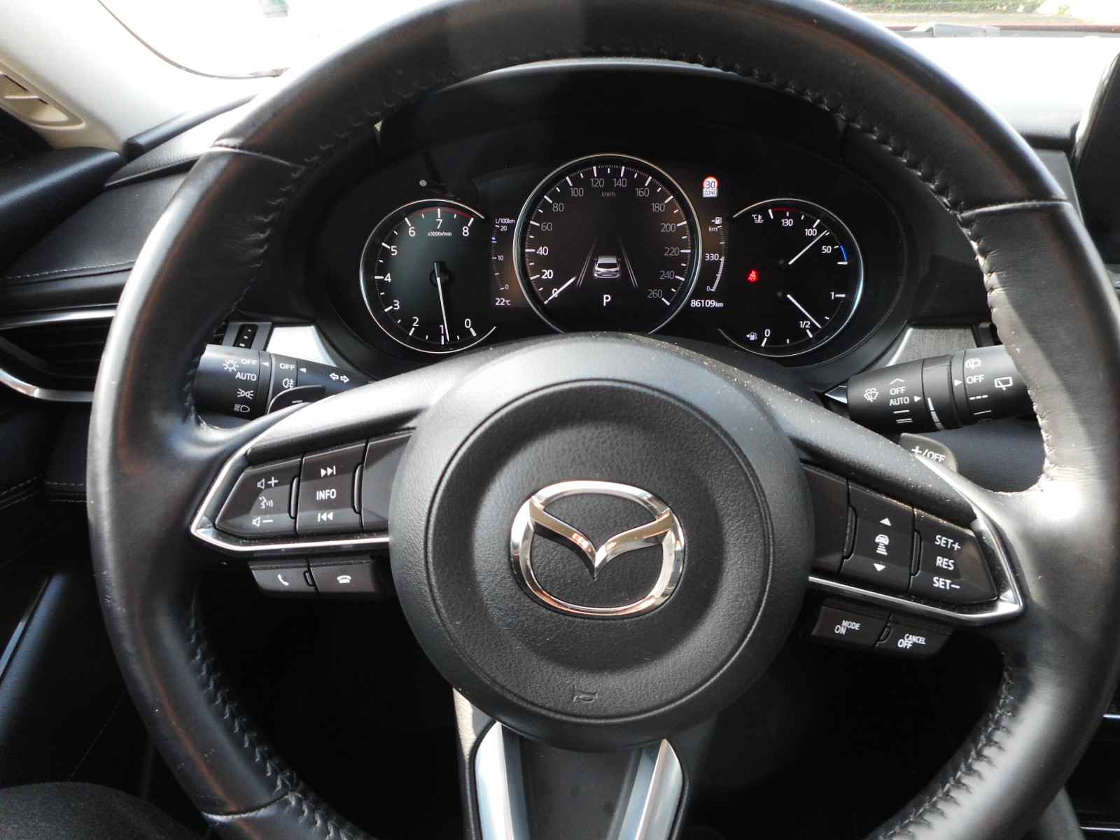 De nieuwste veiligheidssystemen komen in deze Mazda 6 Sportbreak samen. Belangrijk voor uw veiligheid en die van uw passagiers is de verkeersbord-detectie in deze auto. Indien u onbedoeld de rijstrook lijkt te verlaten, reageert het Lane-keeping systeem meteen en corrigeert. Forward collision warning is een automatisch waarschuwingssysteem dat direct in werking treedt bij gevaar voor een kop-staartbotsing. In deze Mazda vinden we verder een head-up display, dodehoekdetectie, hill hold functie, brake assist, vermoeidheidsherkenning en bandenspanningcontrolesysteem.