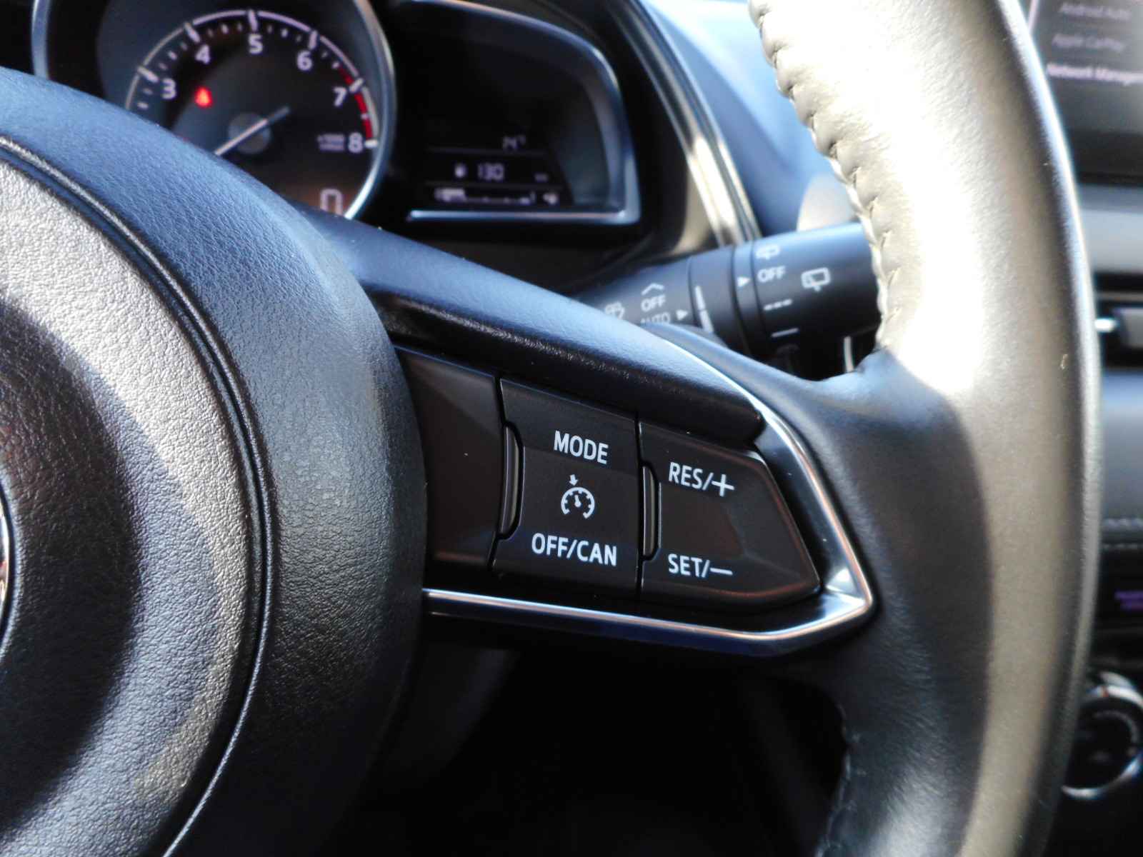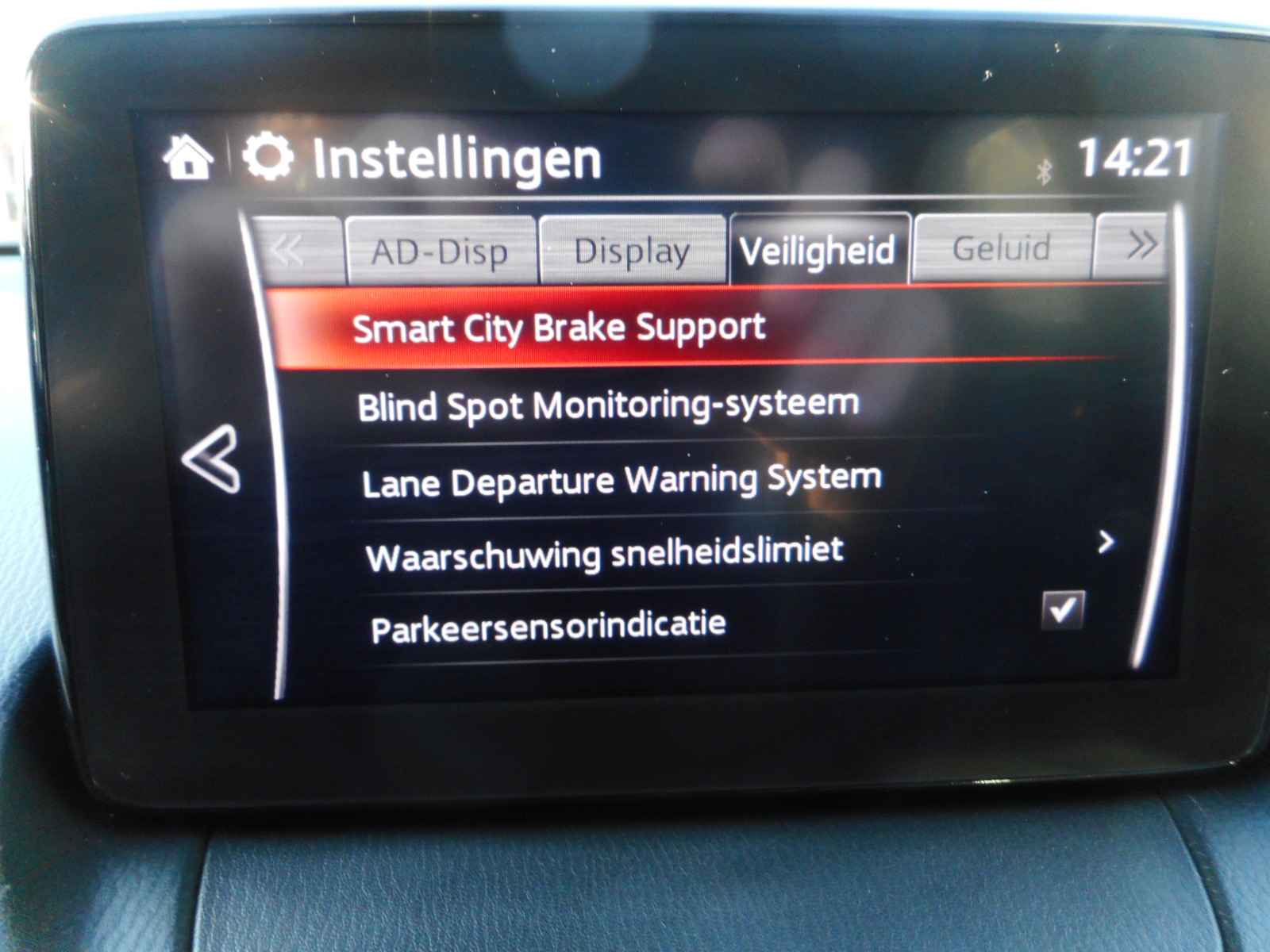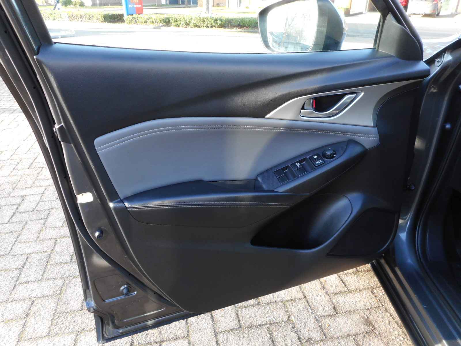 Zoals u mag verwachten van deze Mazda CX-3 is hij uitgerust met een reeks aan actieve veiligheidssystemen. Het Lane-keeping systeem registreert permanent of u binnen de lijnen van de rijstrook blijft; dwaalt u onbedoeld af, dan waarschuwt het systeem en corrigeert de koers. De veiligheid van deze auto wordt verder verhoogd door head-up display, dodehoekdetectie, hill hold functie, autonoom remsysteem en bandenspanningcontrolesysteem.