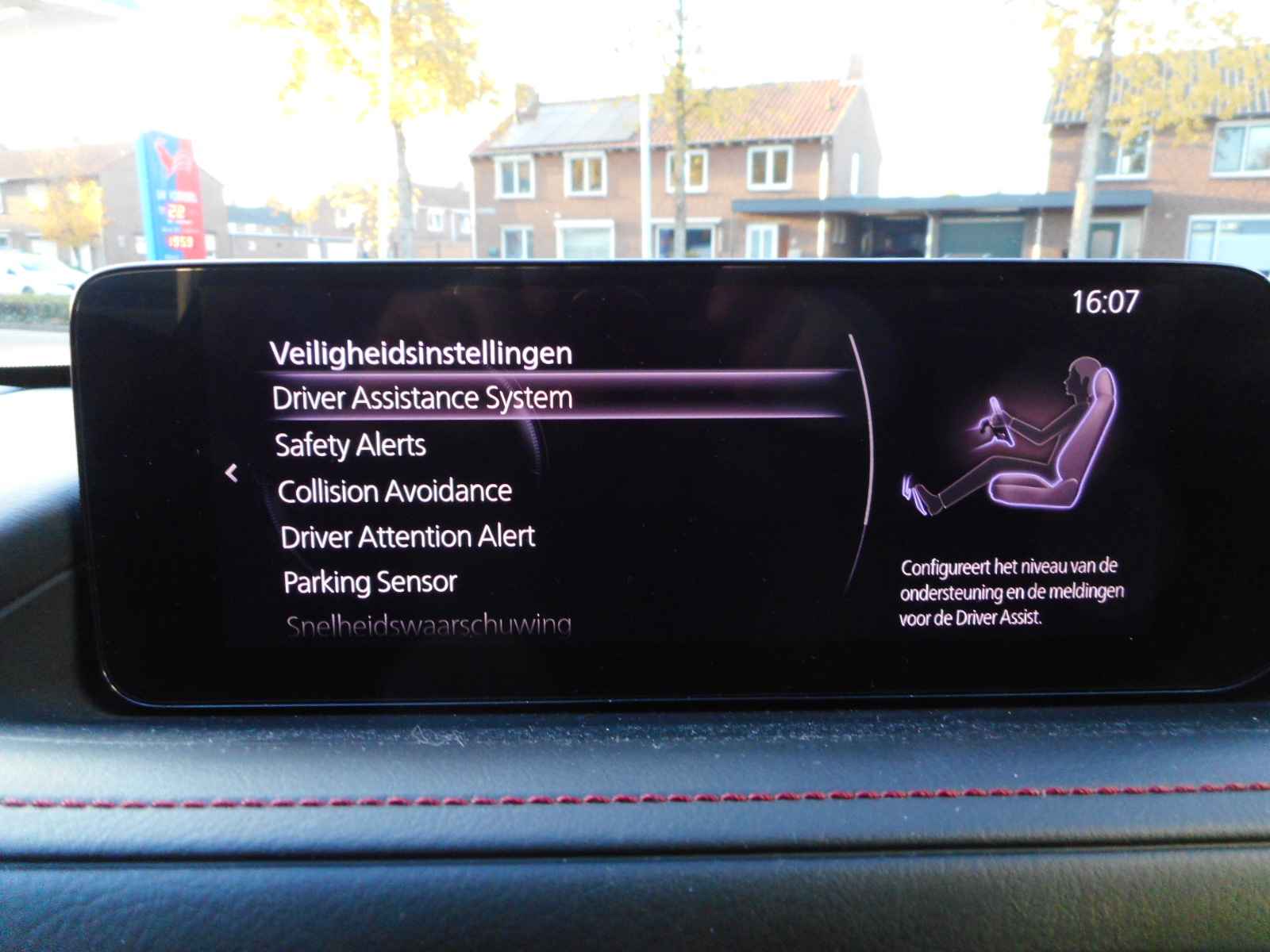 Zoals u mag verwachten van deze Mazda CX-30 is hij uitgerust met een reeks aan actieve veiligheidssystemen. Hou de weg in het vizier! De head-up display zorgt dat u de dashboardinfo in beeld geprojecteerd krijgt. Onderweg fungeert de verkeersbord-detectie als het ware als uw bijrijder en attendeert u op de verkeersborden langs de weg. Het Lane-keeping systeem garandeert dat u zich niet onverhoeds buiten de lijnen van de rijstrook begeeft. Dankzij veiligheidsvoorzieningen als dodehoekdetectie, forward collision warning system, hill hold functie, brake assist, vermoeidheidsherkenning en bandenspanningcontrolesysteem, bent u steeds veilig onderweg.